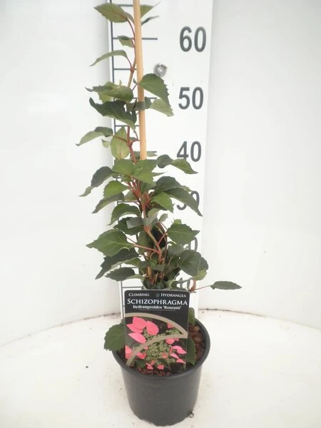 Schizophragma hydrangoides Roseum is een klimhortensia met roze bladeren. De bloeiperiode is van juni t/m juli met prachtige roze bloemen in pluimvorm. Deze hortensia is winterhard en lokt bijen en vlinders, is goed geschikt voor muurbeplanting of als bodembedekker. Kan zelfs op het noorden staan, maar heeft wel goed gedraineerde aarde nodig.